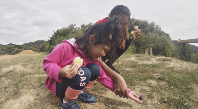 The next day, we went on a little hike at Te Whiti firebreak. Chinee taught Kaelyn how to hold butterflies. She was so happy, she kept following the butterfly around.